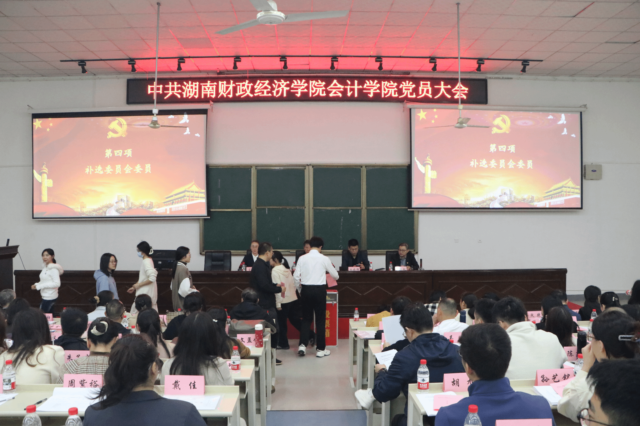 (本网讯)为加强基层党组织建设,健全组织机构根据《中国共产党普通高等学校基层组织工作条例》和《关于同意部分二级党组织召开党员大会的批复》(湖财党发〔2025〕56号)的文件精神,2025年10月29日下午,会计学院党委在第二教学楼2J01教室召开党员大会增补学院党委委员学院全体师生正式党员参加会议,学院联系领导、校党委委员、副校长潘爱民出席会议。会议由院党委书记肖芳主持。