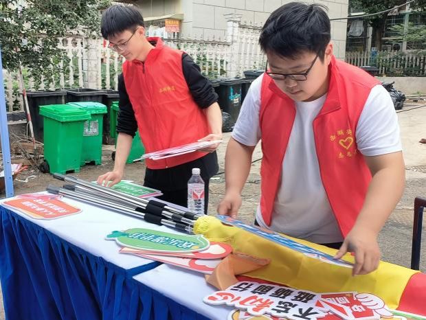 活动当天,学生第五党支部组织数十名学生党员深入社区,志愿服务在党支部和社区的组织下有序推进,秩序维护组精准疏导人流,保障活动现场零拥挤;服务引导组为居民讲解活动流程、协助签到,并为老年群体提供“一对一”贴心服务;环境美化组创新“垃圾分类积分制”,清理废弃物料,将可回收物改造,实现资源循环利用;暖心帮扶组搀扶行动不便的老人、协助儿童参与互动游戏,传递温暖关怀。