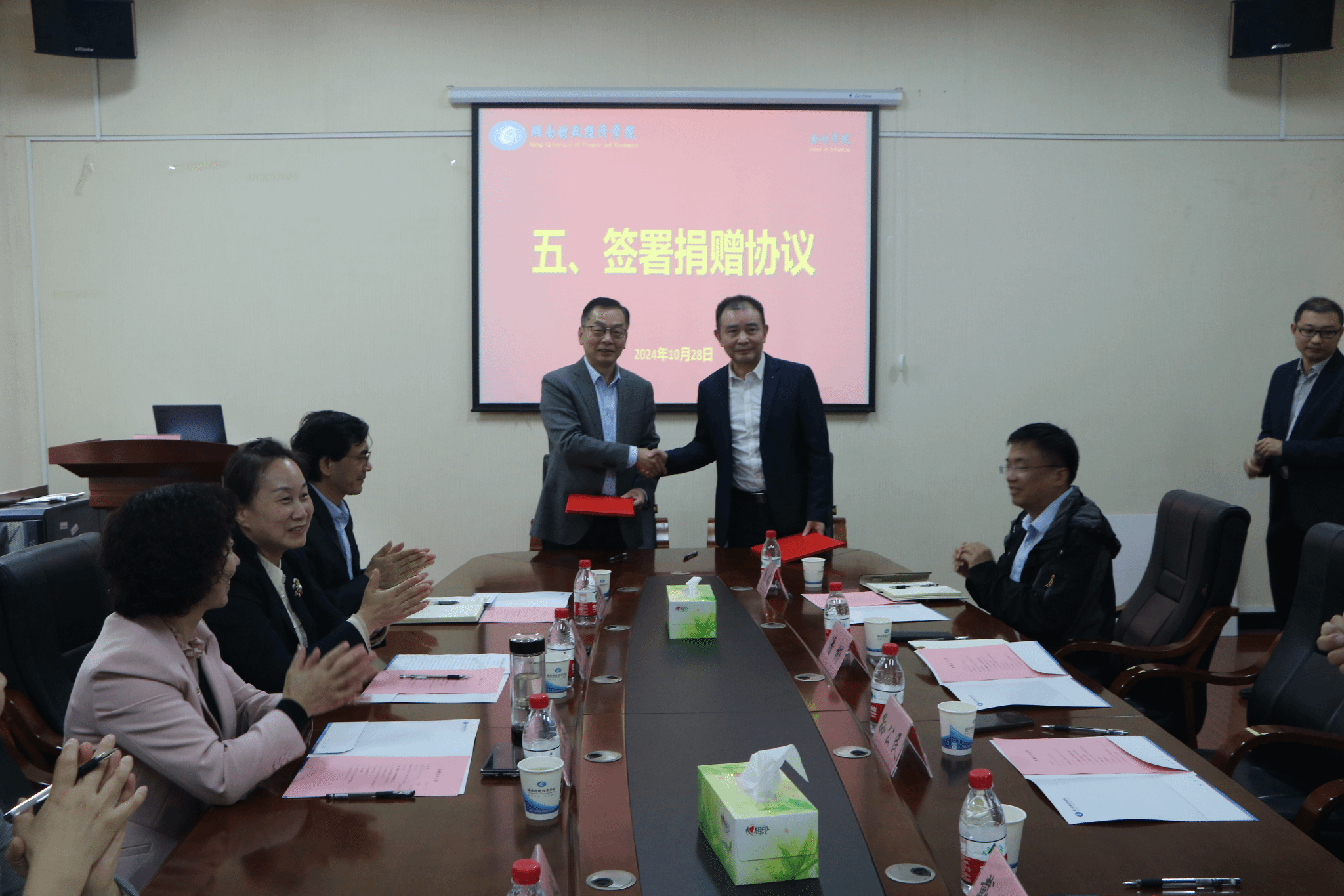 随后,会计学院院长潘彬和孙公民签署捐赠协议并进行现场捐赠。