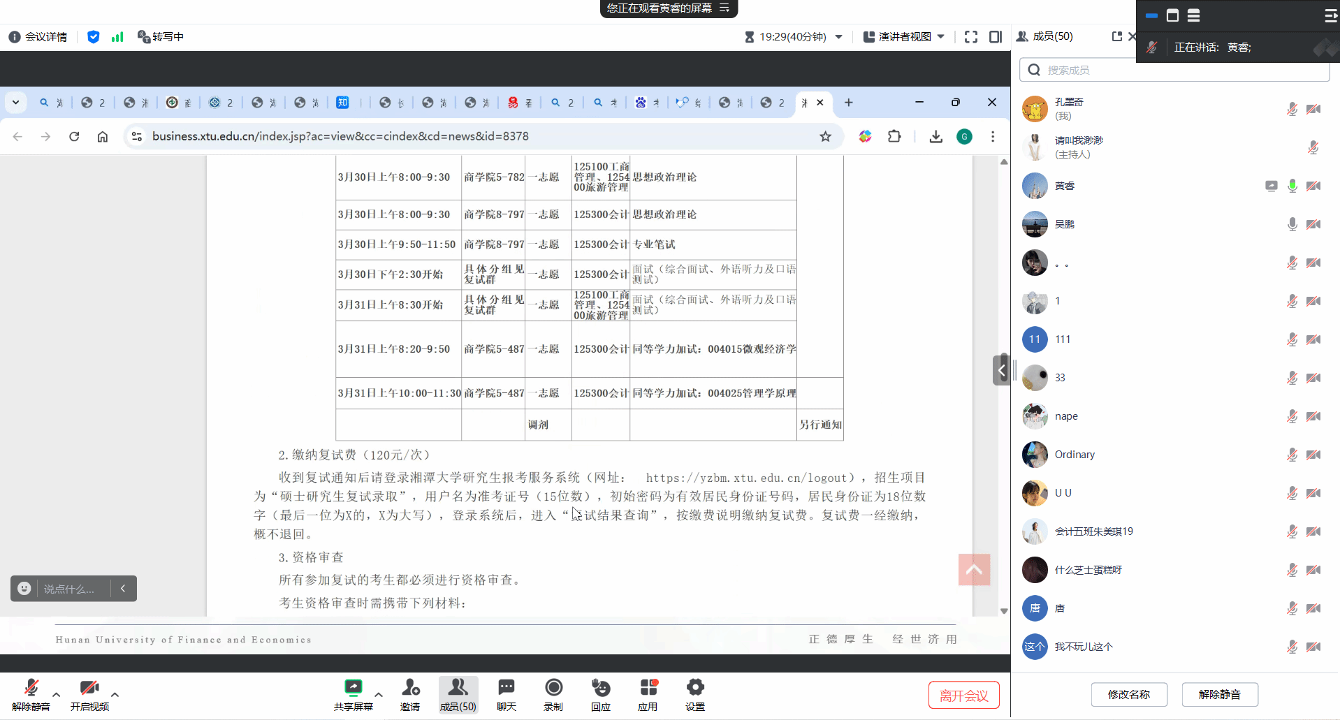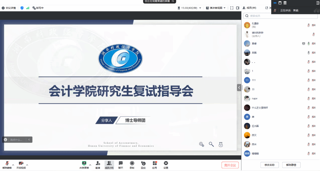 历时两小时的云端会议结束时,屏幕间持续刷新的"感谢老师"弹幕彰显活动成效。据会后反应,大部分参与者认为指导会"显著提升备考信心"。本次活动不仅延续了会计学院"传帮带"育人传统,更通过"名师+校友"双轨指导模式,构建起贯穿笔试-复试全周期的立体化支持体系,为会计学院学子决胜考研"最后一公里"注入强劲动能。