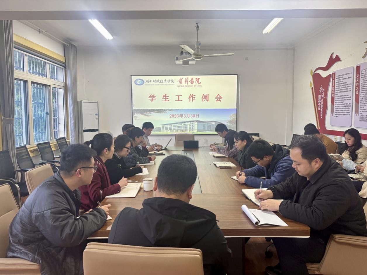 3月30日下午,雷锋书院召开新学期学生工作推进会,直属党支部副书记黎红梅、副书记袁冶及全体学工人员参会,会议聚焦思想理论教育与价值引领、学风建设、校园危机应对、清明假期安全教育及辅导员自我提升等重点工作和核心任务进行了部署推进。黎红梅肯定前期工作成效,指出大学英语、高等数学挂科率较前有所下降,强调学风建设是重中之重。她要求学工人心在一线、人在一线、干在一线,以养成教育为抓手,多深入宿舍、教室一线,及时发现学生真实的学习和生活作息情况,...