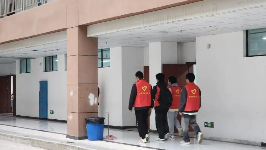 (雷锋志愿者在校园内进行文明劝导)