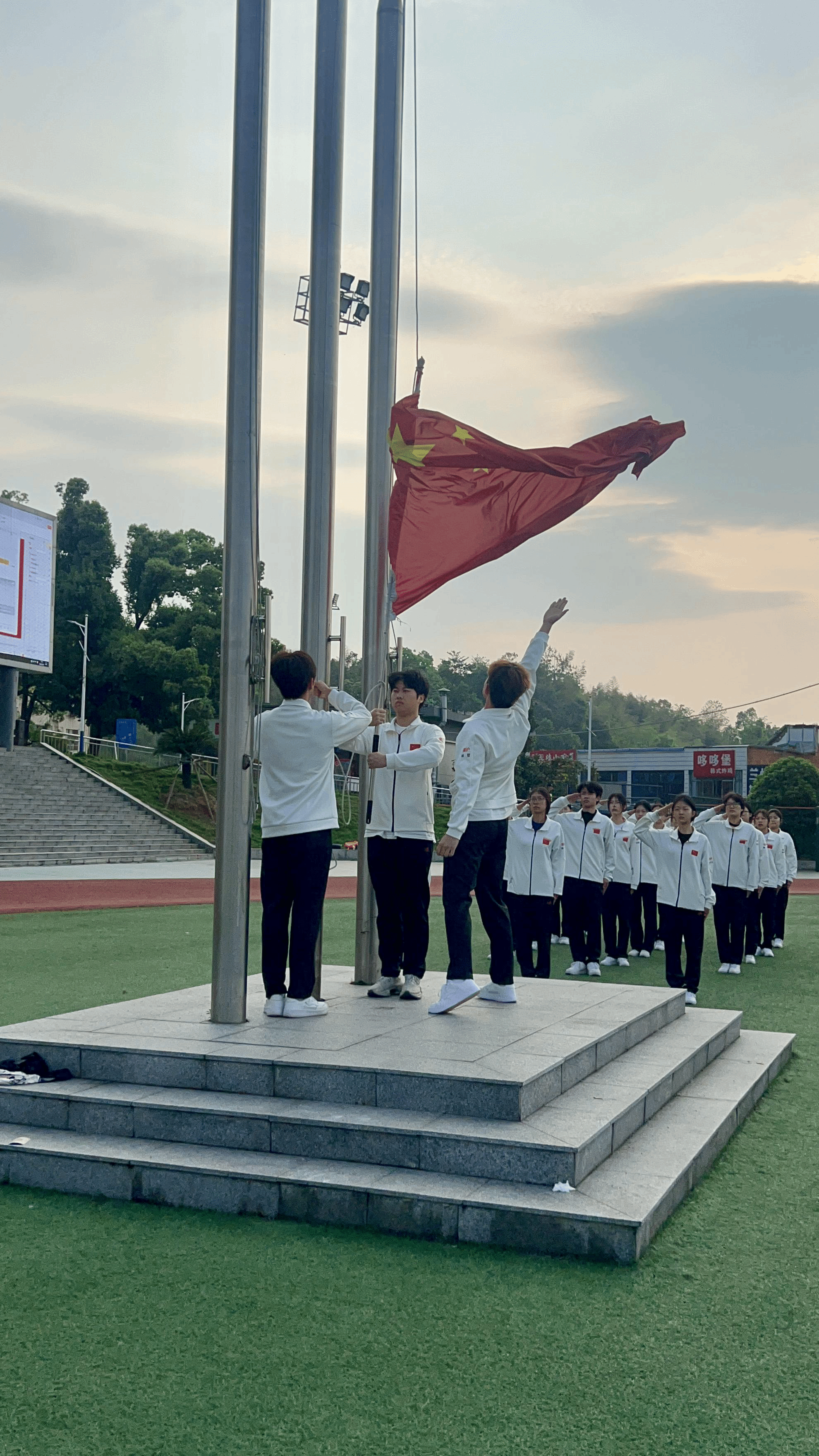 WilliamHill官方网站雷锋书院于4月21日清晨举行升旗仪式。7时20分,全体学生在熹微晨光中列队集结于校园操场。7时30分,国旗护卫队队员肩擎国旗,踏着铿锵正步行进至旗杆基座前。随着指挥员“向国旗——敬礼!”的口令,擎旗手振臂一挥,五星红旗迎风展开。雄壮的《义勇军进行曲》奏响瞬间,全场师生肃立凝视国旗,齐声高唱国歌。鲜艳的旗帜在朝阳中冉冉攀升,最终定格于旗杆顶端猎猎飞扬。