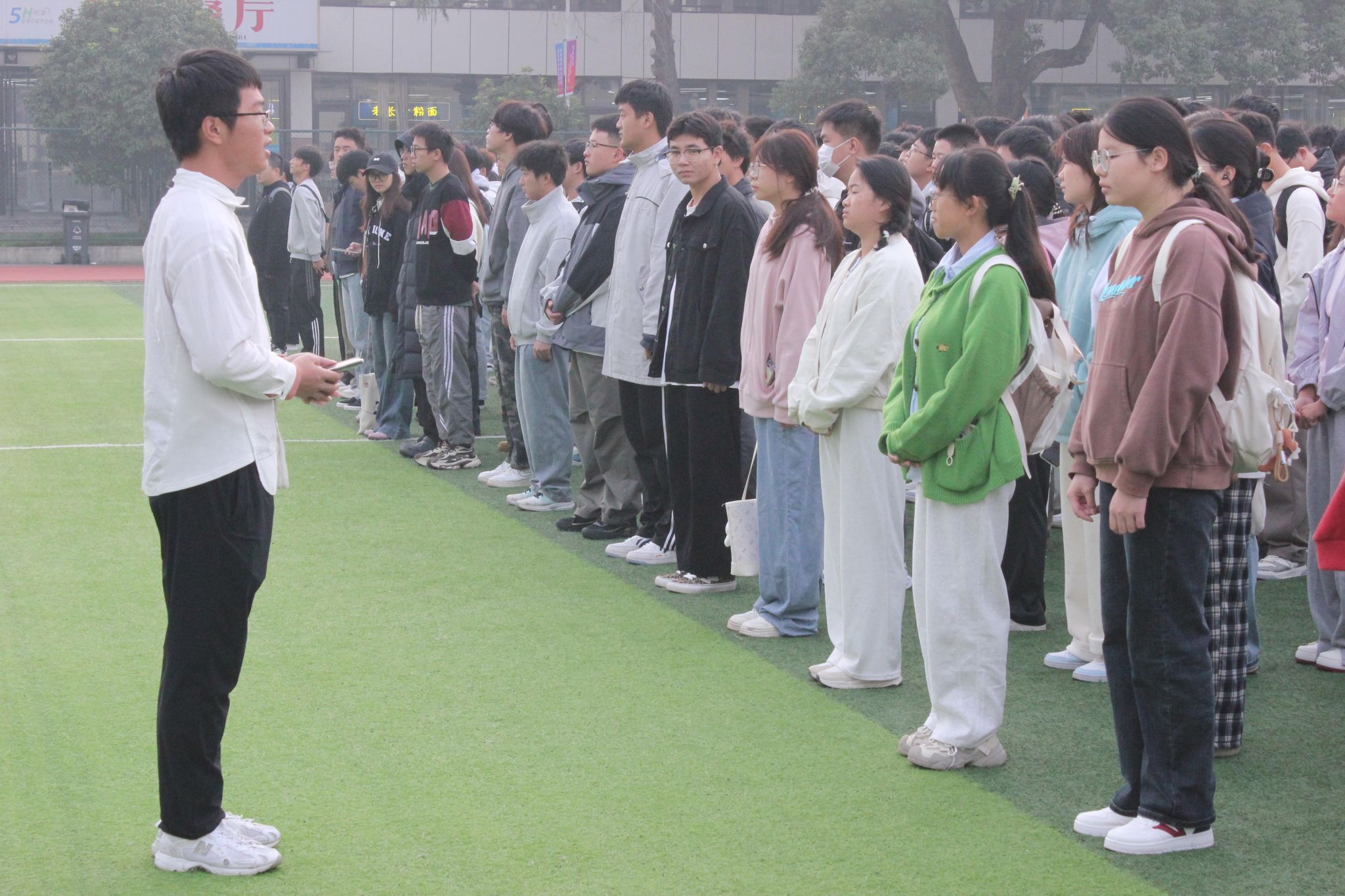 在国旗护卫队整齐的步伐声中,鲜艳的五星红旗入场。随后,国旗升起,全体师生高唱国歌,表达对国旗最崇高的敬意。