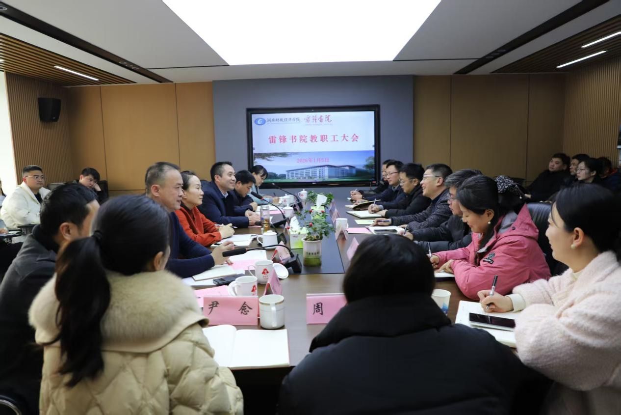 2026年1月5日下午,学校在雷锋书院行政楼205会议室召开工作会议。学校党委副书记苏玲出席会议并讲话,书院全体教职工参会,会议由雷锋书院直属党支部书记余新明主持。会上,余新明领学了习近平总书记在中央政治局民主生活会上、二十届中央政治局第二十一次集体学习时的重要讲话精神。强调要深刻领悟精神实质,将其贯穿书院党建与育人工作全过程、各环节,切实推进作风建设常态化长效化。雷锋书院常务副院长杨健作2025年度工作总结暨2026年工作计划报告。...