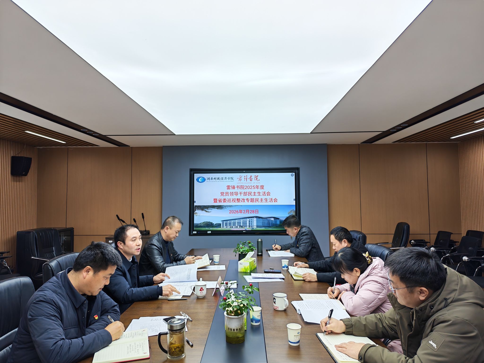 2026年2月28日上午,雷锋书院直属党支部在行政楼205会议室召开2025年度党员领导干部民主生活会暨省委巡视整改专题民主生活会。学校党委委员、副校长黄渊基到会指导,会议由支部书记余新明主持,雷锋书院全体领导班子成员参加会议。会前,根据《中共湖南省纪委机关 中共湖南省委组织部转发<中共中央纪委机关 中共中央组织部关于开好2025年度县以上党和国家机关党员领导干部民主生活会的通知>的通知》(湘组〔2025〕112号,以下简称《...