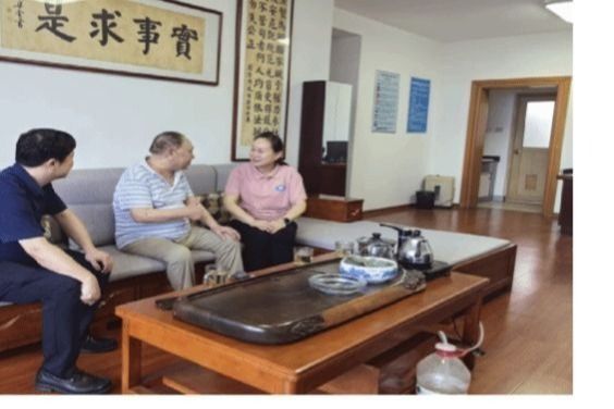校党委副书记苏玲(右)慰问老党员符方照(中)李慧/摄