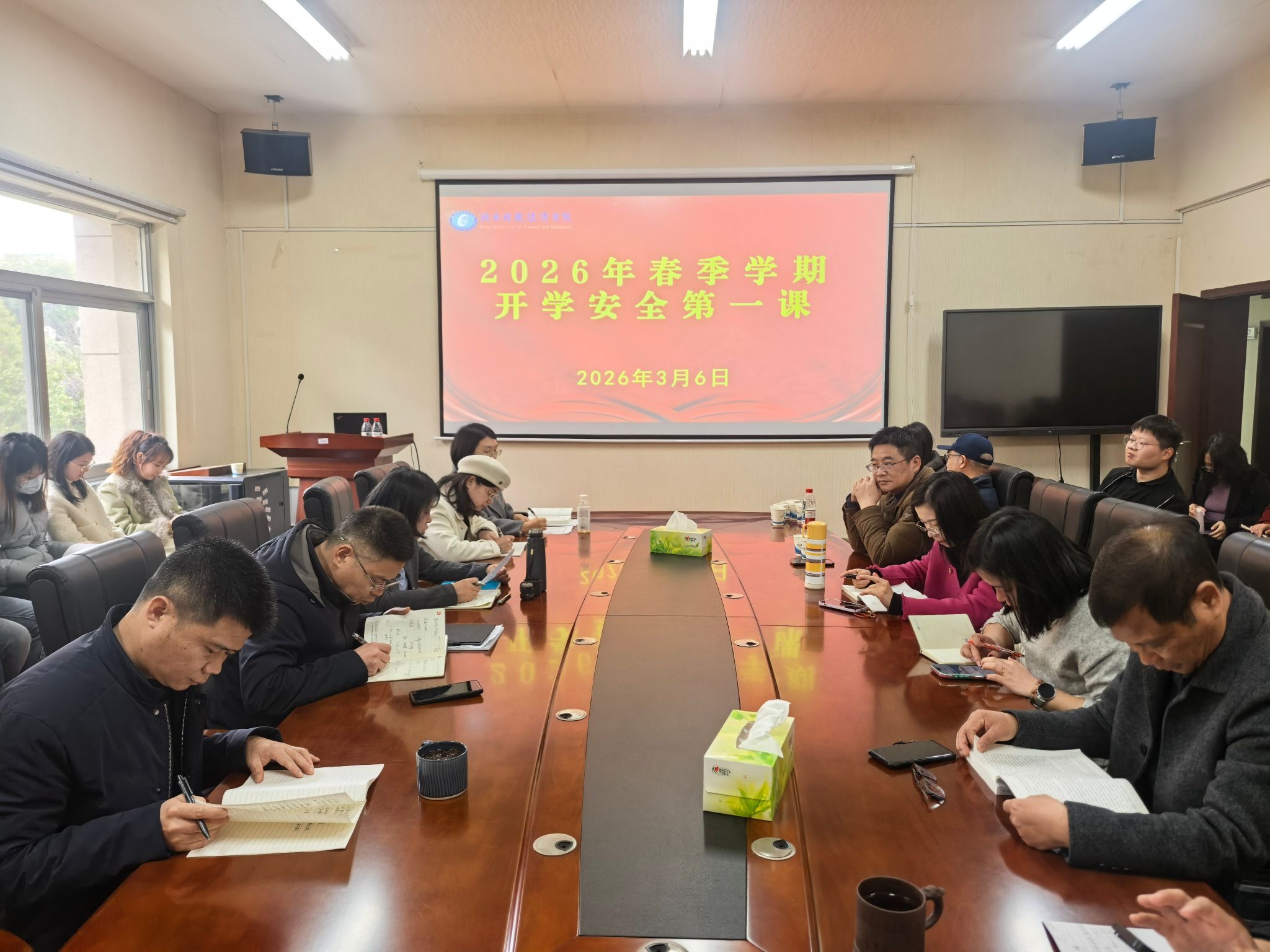 3月6日下午,马克思主义学院在主校区办公楼217会议室召开2026年“开学安全第一课”专题会议,全体教职工参加。
