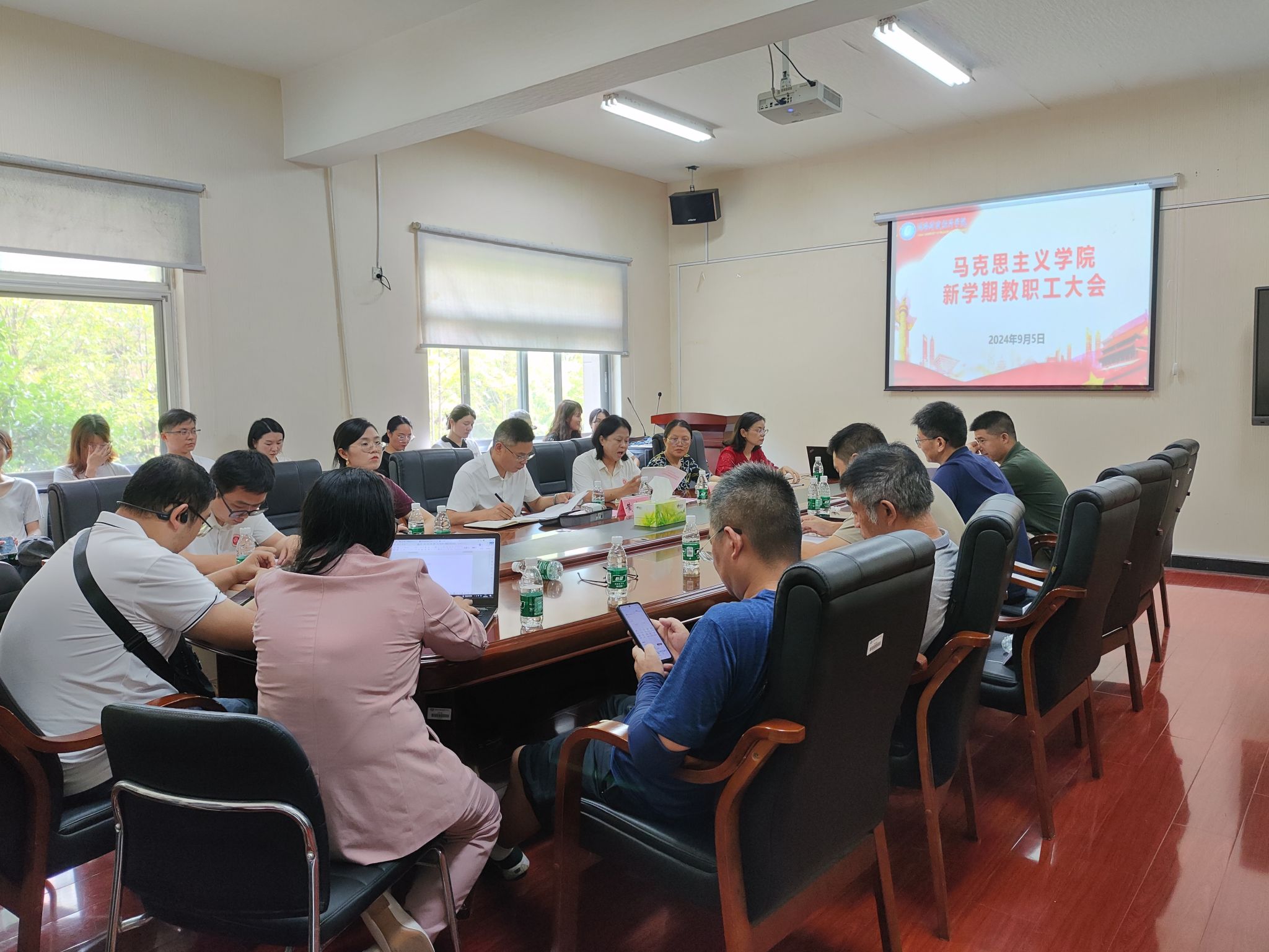 9月5日上午,马克思主义学院在主校区办公楼215会议室召开新学期全院教职工大会。会议由院直属党支部书记刘东艳主持。