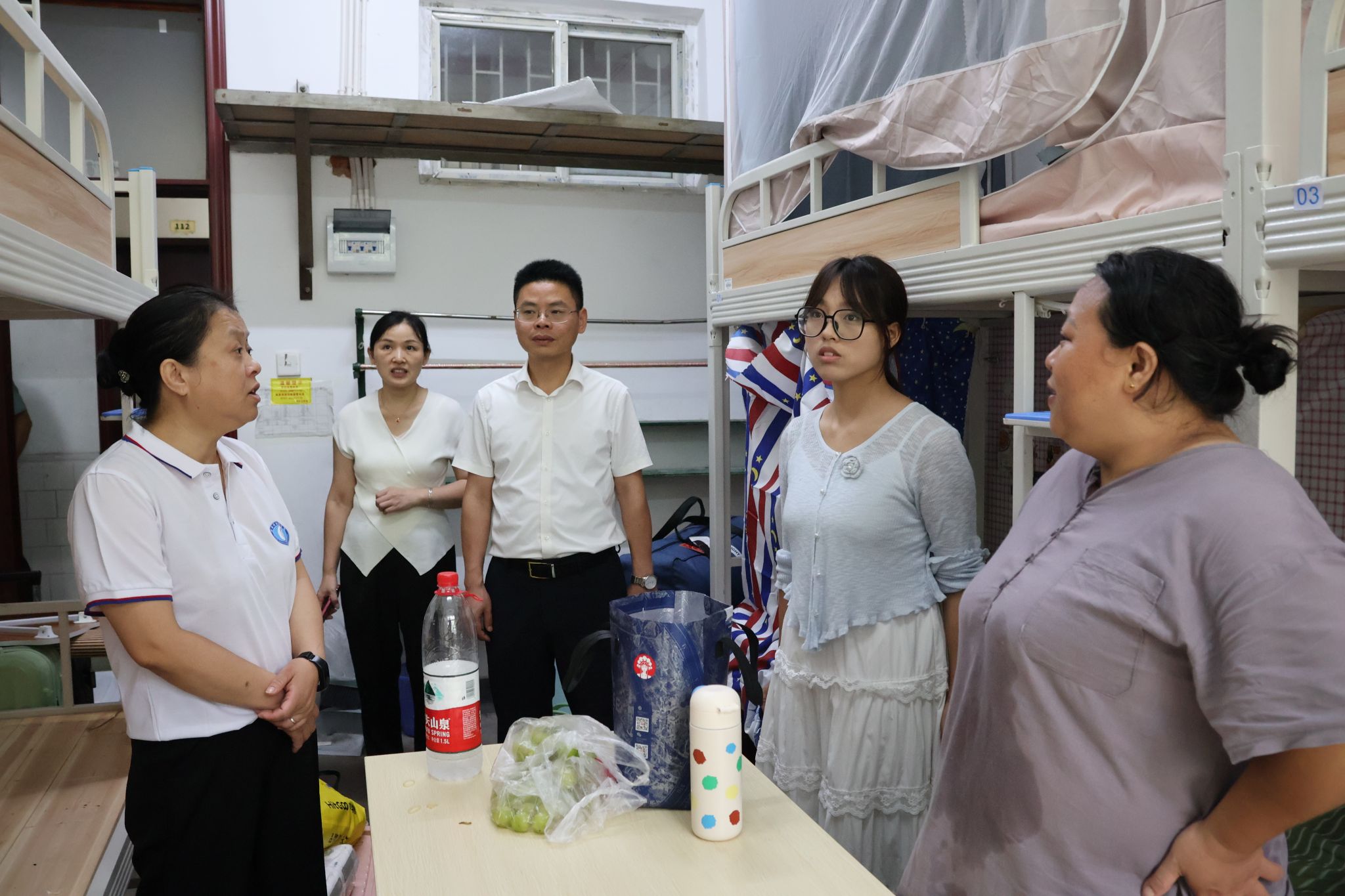 学院直属党支部书记刘东艳、院长黄建跃、学工办主任周雄艳、新生辅导员苏扬波、罗婷亲临现场,详细询问学院新生报到情况,深入学生宿舍与新生亲切交谈,询问入学感受,鼓励他们在大学勇敢面对挑战,努力实现自己的人生目标。学院领导及老师的关怀让新生们倍感温暖,也让他们对大学生活充满期待。