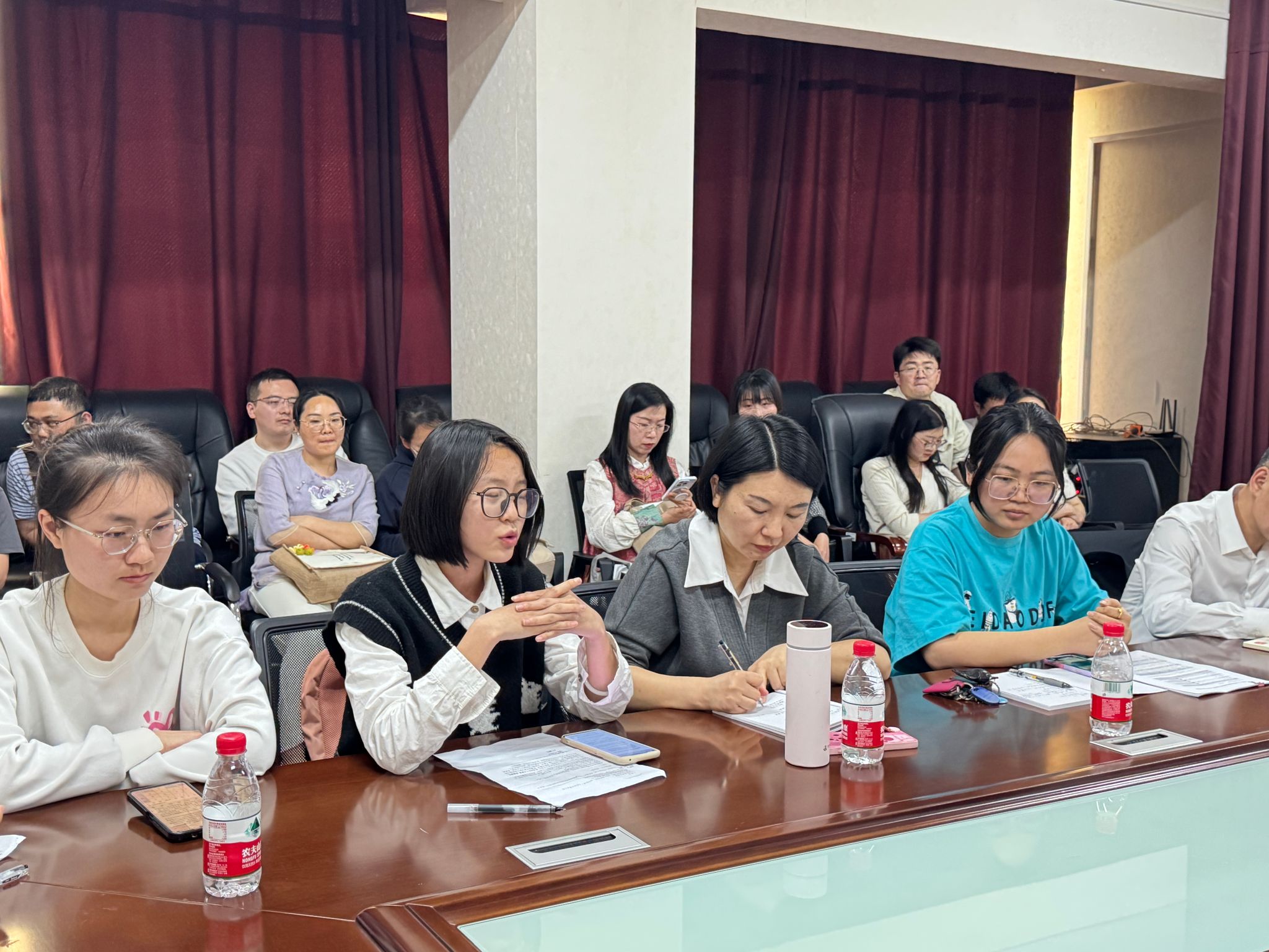与会老师认真记录同学们的意见建议,就部分问题进行了现场解答和说明。黄建跃表示,学院将充分考虑同学们提出的合理化意见和建议,并制定有效的改进措施。