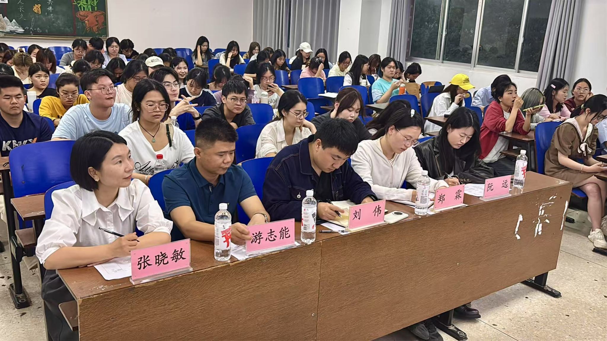湖南省地质中学教师郑霖以及长沙市长郡开福中学教师、长沙市教育系统理论宣讲专家刘伟、马克思主义学院游志能副教授、思想政治教育系主任张晓敏、青年教师阮远担任本次大赛评委。2023级思想政治教育专业全体学生及2022级部分学生到场观摩学习。