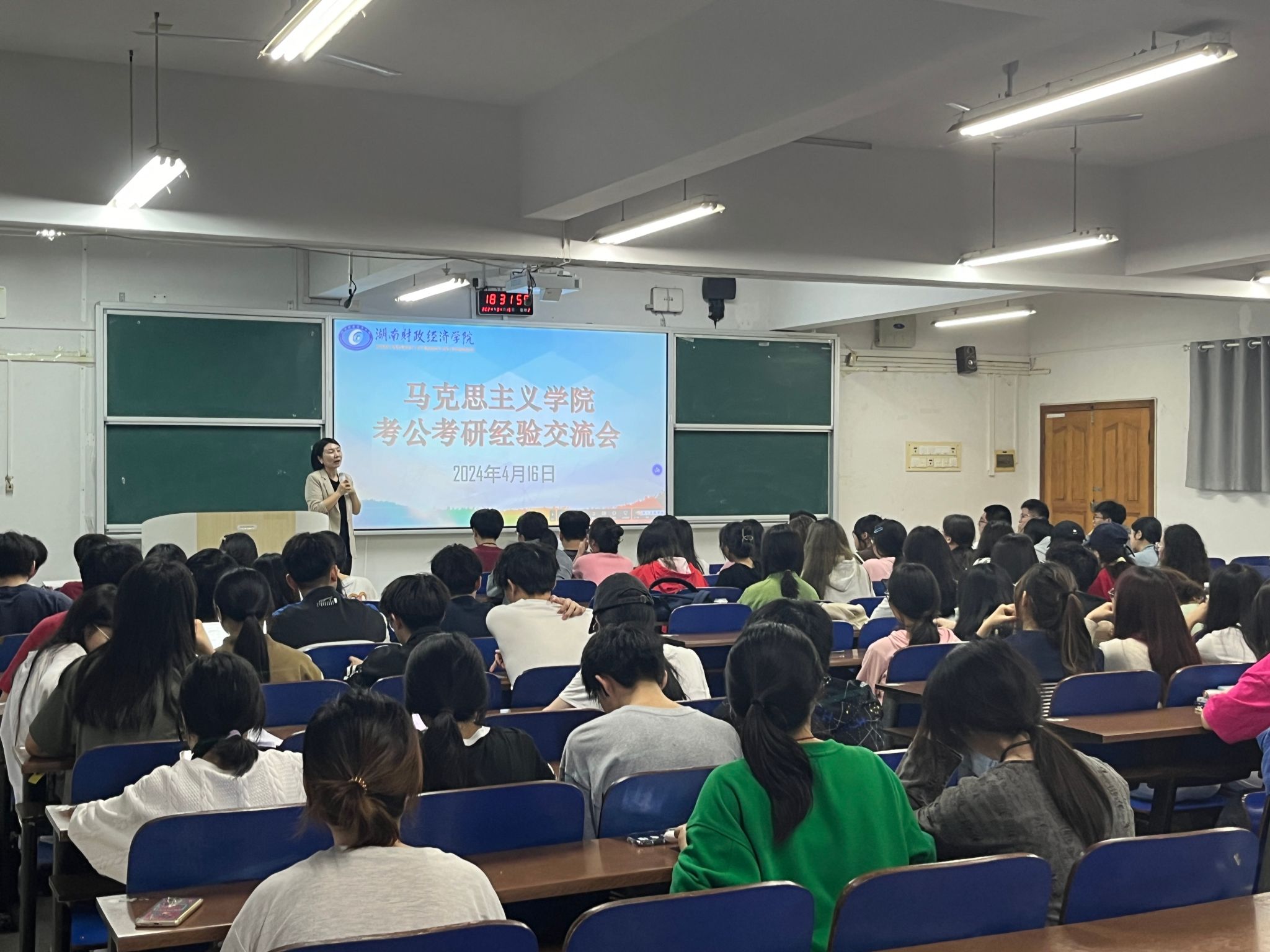 4月16日晚,主校区3110教室座无虚席,马克思主义学院近百名学生在这里聆听了一场别开生面的“考研+考公”经验分享会。5名来自学校不同专业的优秀应届毕业生,结合自身求学经历分享成功考取地方公务员、选调生和顺利通过硕士研究生考试的实战经验。思想政治教育系主任张晓敏分别介绍了5名毕业生的基本情况,鼓励全院学生从优秀毕业生的成功事迹中收获体悟、积蓄力量,理性分析个人专长、客观应对自身不足,始终胸怀梦想、脚踏实地,明确奋斗目标、坚定前进方向,不懈努力书写人生新篇章。