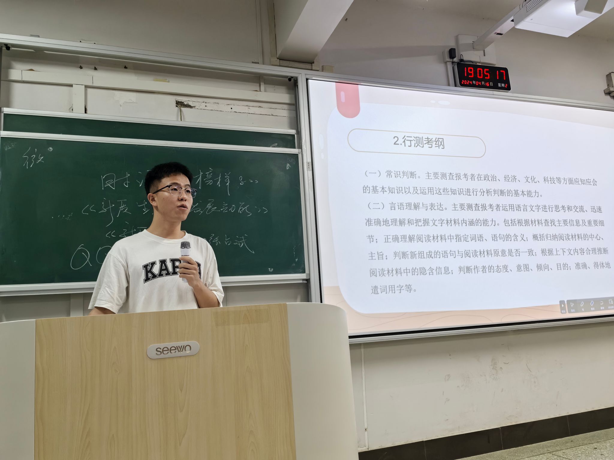 会计学院陈永达,考取郴州市选调生。他从考情分析、备考心得、备考建议、西部计划项目、经验总结等方面,就备考选调生经验进行了分享,提出“三要三防”建议,鼓励大家锚定发展目标并为之努力奋斗,一同追梦、筑梦、圆梦。