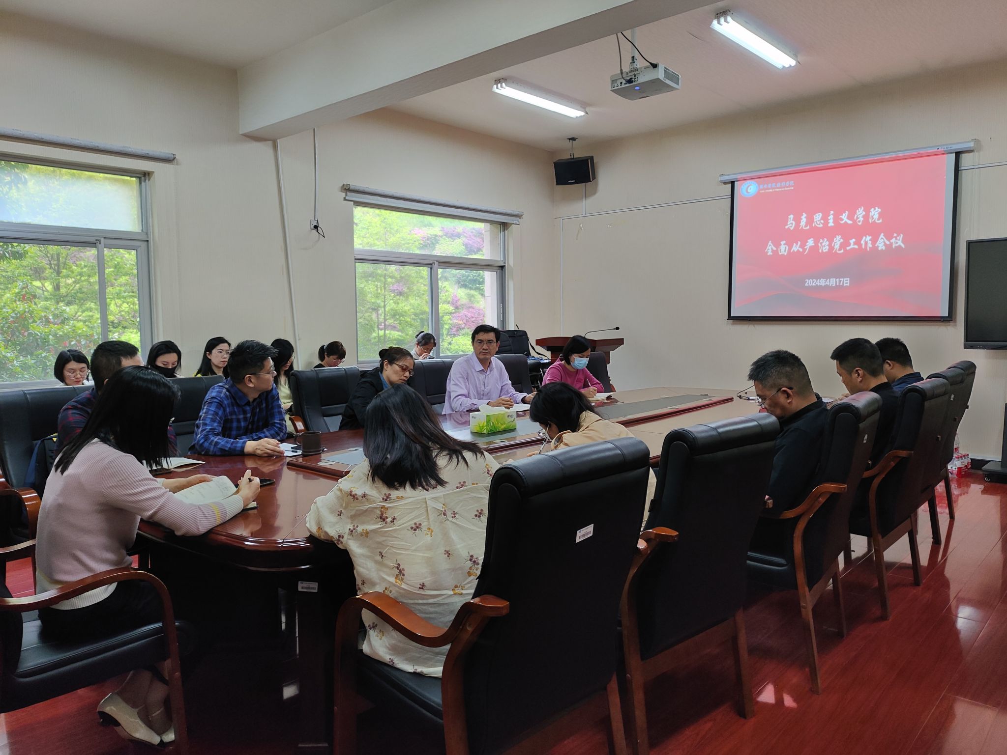 4月17日下午,马克思主义学院在主校区办公楼215会议室召开党纪学习教育动员会暨全面从严治党工作会议。会议由院直属党支部书记刘振强主持。