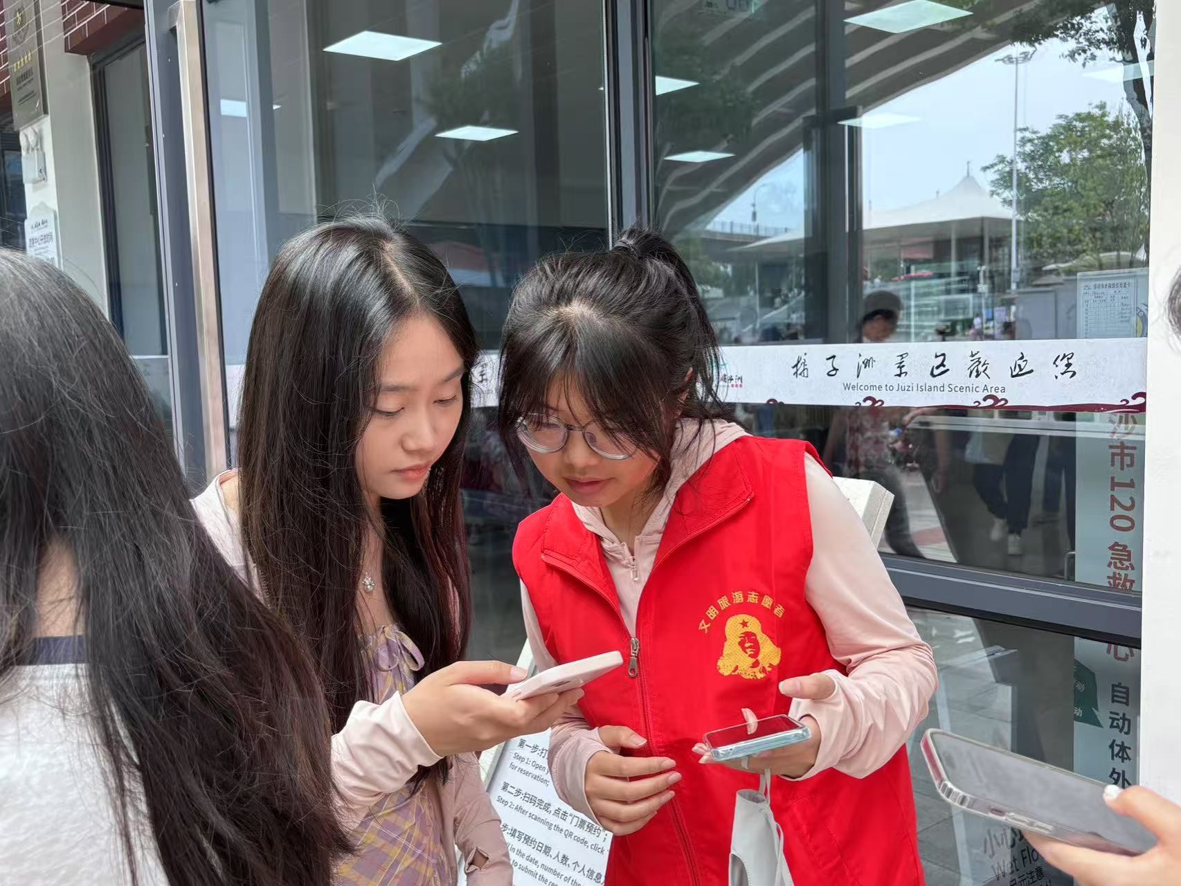 活动当天,马院学子早早抵达橘洲。他们身着统一的志愿者服装,迅速分组,有条不紊地投入到志愿服务工作中。活动中,马院学子以耐心的态度为游客提供景区预约、观光车购票指引,以温婉的语气规劝不文明行为,收获了游客们真挚的感谢和衷心的支持。活动最后,志愿者们有序归还马甲。