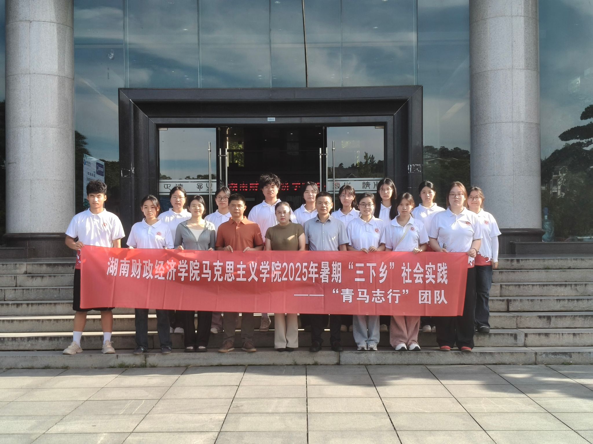 (学校各实践队于大礼堂前合影 图来源湖财青年)