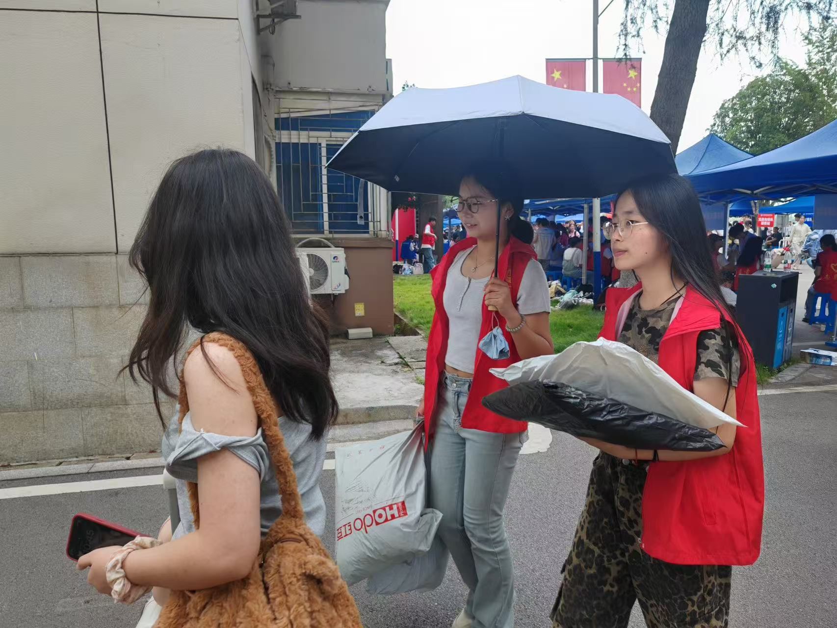 图为志愿者帮助新生提拿行李(冯钰晴摄)