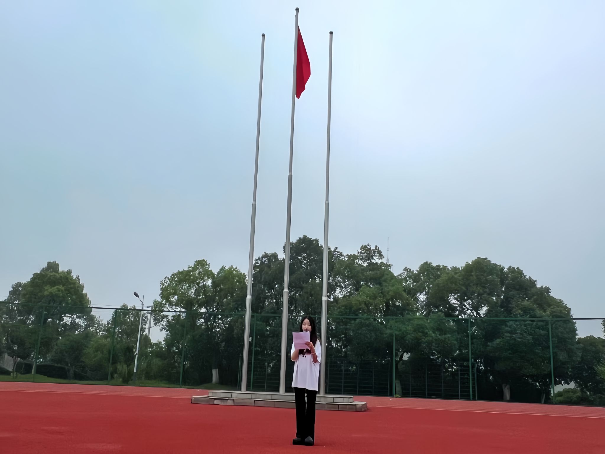 七时整,升旗仪式正式开始。校国旗护卫队步伐铿锵,庄严护送国旗入场。伴随着雄壮的《义勇军进行曲》,五星红旗冉冉升起,全体师生肃立注目,齐声高唱国歌,肃穆中涌动着澎湃的爱国热情。