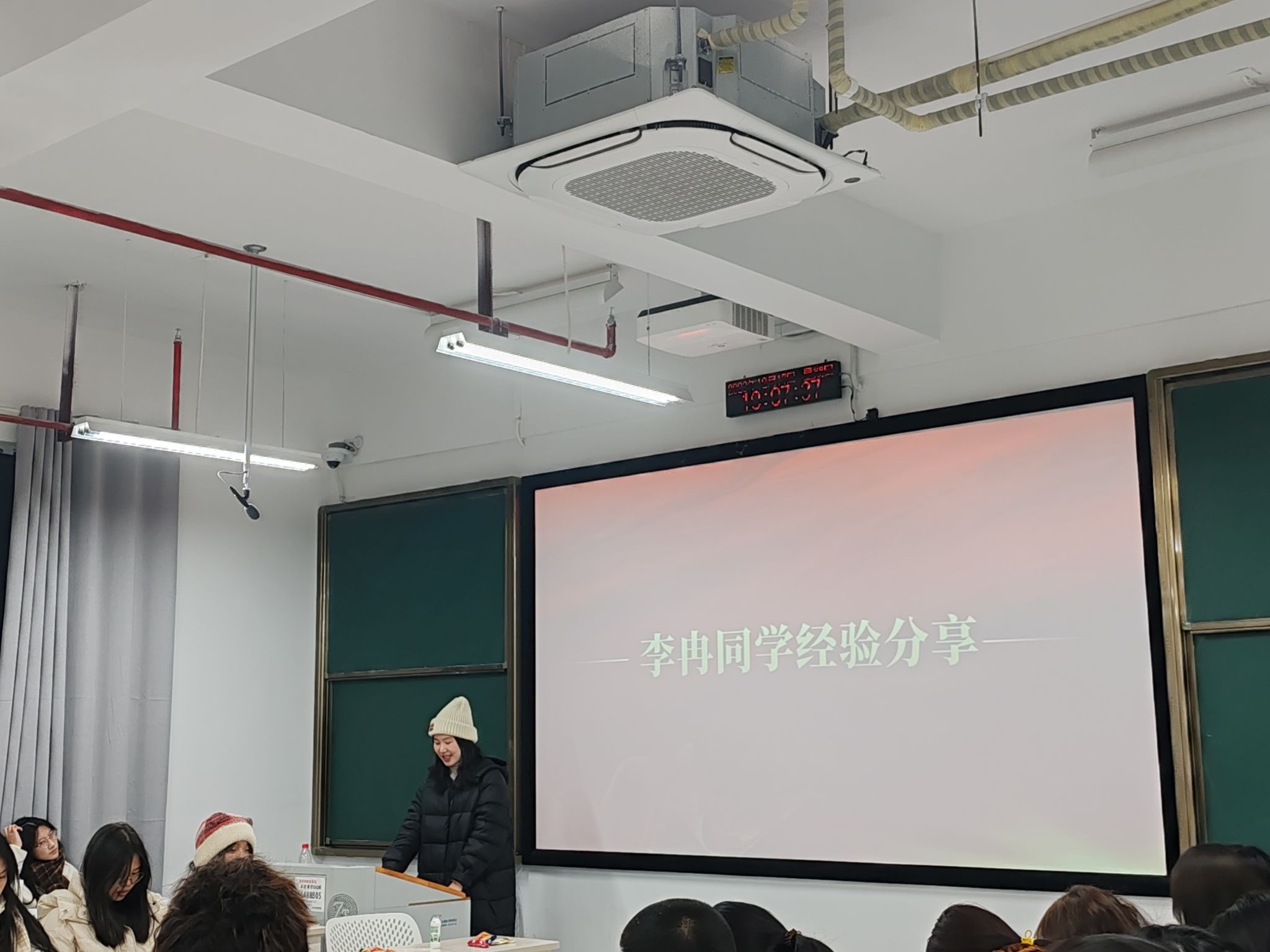 活动分为“趣味游戏”“经验分享”“提问互动”三个环节。首先,通过“正话反说”的趣味游戏拉进新老生之间的距离。随后,由六位2022级学生代表分享自己的经验。资婕妤分享自己的在读书籍,强调作为思政人应该多读不同类型的书籍;李冉从自身经历切入,鼓励大家在追寻热爱的同时,也要勇于“破圈”,躬身实践,并表示很期待能与学弟学妹们深入学习交流,一起努力为学院争光;曹蓝、钱嘉仪、刘丹炫、刘鹤明、潘盛蓝分别从时间管理、学习技巧、生活学习工作三者平衡等方面为2023级新生提出建议。最后,通过互动提问环节,有针对性地解决学生内心困惑之处,有效拉近新老生之间的距离。