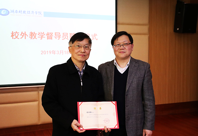 3月18日下午,湖南财院在办公楼715会议室举行校外教学督导员聘任仪式。湖南财院副校长刘建民为4位受聘人员颁发聘任证书。人事处处长刘钟理、教务处处长兼教学质量监测与评估处处长刘征、教学质量监测与评估处副处长邓永红、教务处副处长李小娟及各二级学院(教学)副院长参加聘任仪式。聘任仪式由刘征主持。