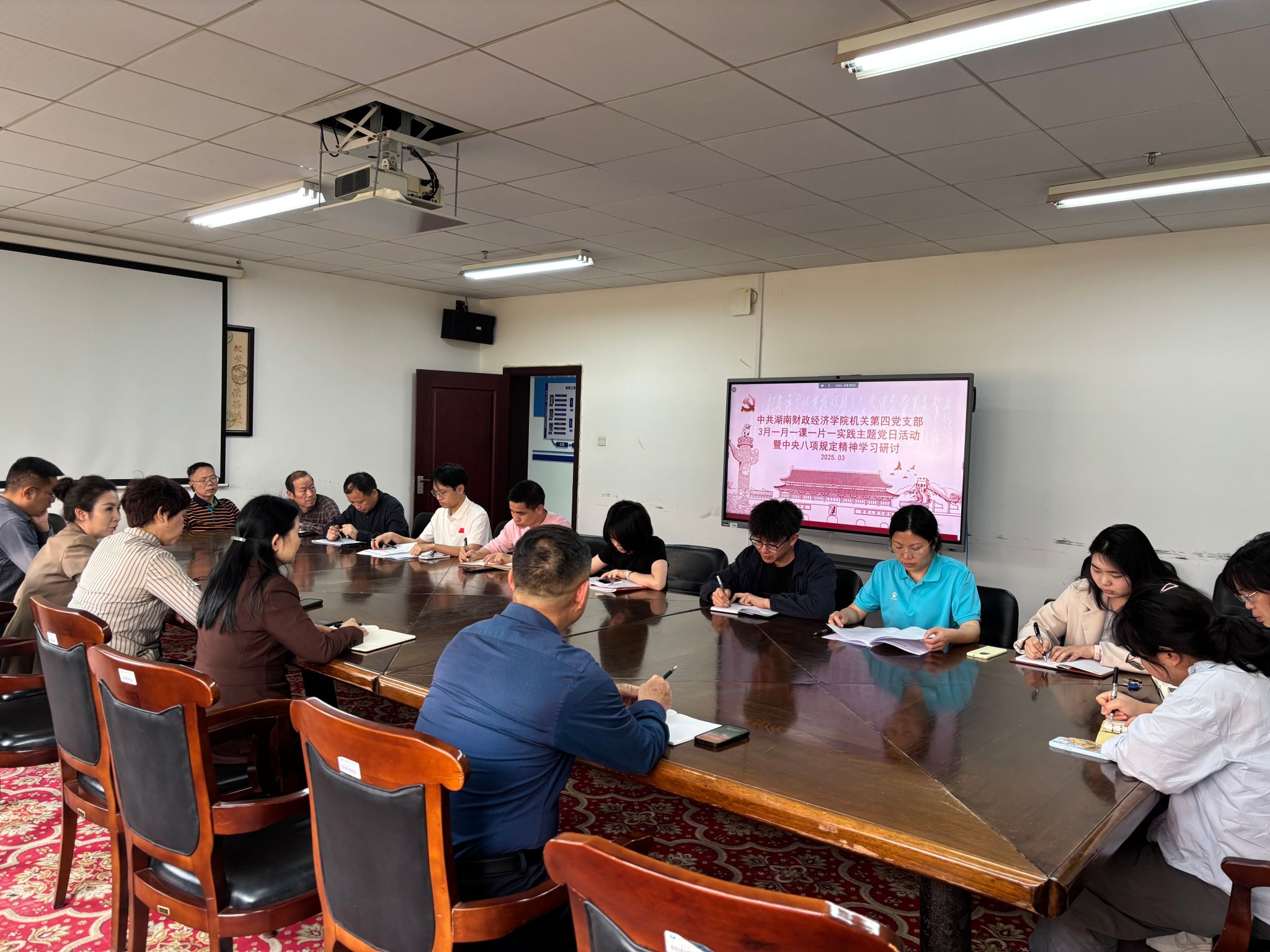 3月27日下午,机关第四党支部在办公楼515会议室开展深入贯彻中央八项规定精神学习教育工作主题党日活动,支部全体党员参加了会议。会议由党支部副书记李莎同志主持。