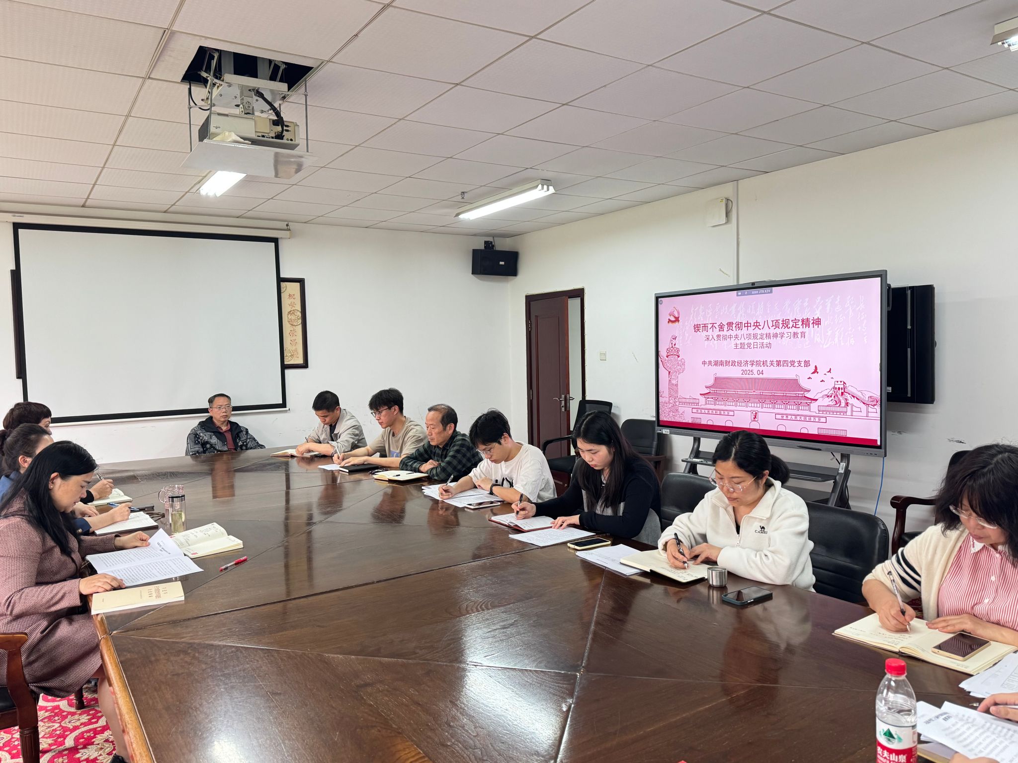 4月27日下午,机关第四党支部在办公楼515会议室开展4月一月一课一片一实践主题党日活动。支部全体党员参加了会议,会议由党支部书记李小娟同志主持。