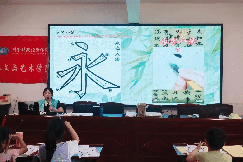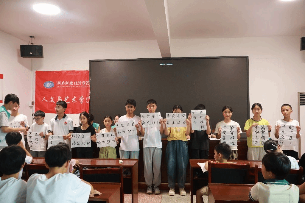 (本网讯)7月9日,人文与艺术学院志愿先锋队在安化县久泽坪村持续开展“播撒艺术的种子”暑期志愿服务实践。围绕音乐、舞蹈、书法三大艺术门类,通过知识讲解、经典赏析与实践体验相结合的形式,为乡村儿童开启了一场丰富多元的艺术启蒙之旅。