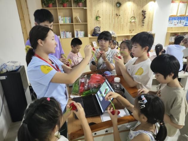 (本网讯)7月17日,人文与艺术学院“知行艺行”志愿服务队在浏阳永安镇,为当地儿童带来了一堂妙趣横生的扭扭棒手工课,点燃了孩子们夏日里的创作热情。