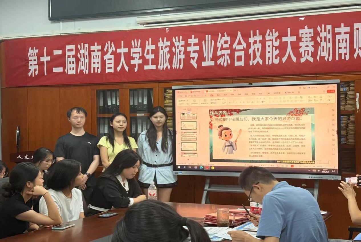 湖南省大学生旅游专业综合技能大赛是由湖南省教育厅主办的旅游管理类高级别赛事,此次预选赛自5月份发布通知以来,吸引了来自汉语言文学、文化产业管理、网络与新媒体、英语、财政学等非旅游管理类专业学生参赛,参赛学生专业覆盖面进一步增强,作品质量进一步提升,接下来推荐参加全省复赛的队伍将在师生共同努力下角逐11月份的全省复赛。
