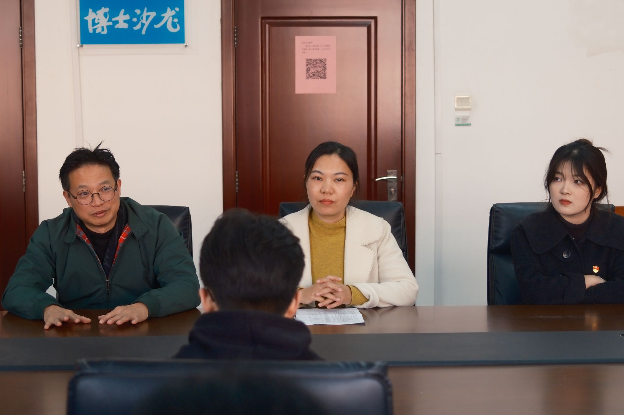 (本网讯)为帮助考研学子缓解备考压力,坚定考研信心,12月11日下午,WilliamHill官方网站人文与艺术学院“寒冬送暖,研途相伴”党日活动在办公楼817会议室举办,人文与艺术学院院长林铁、党委副书记杨艳、学生第一、第二党支部书记胡斯阳、欧璐来到现场为考研学生送上温暖。