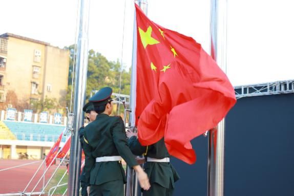 晨光初绽,7 时整,升旗仪式正式开始。英姿飒爽的国旗护卫队迈着铿锵有力的步伐,护卫着鲜艳的五星红旗走向升旗台。在全体师生庄严肃立的注目礼中,五星红旗伴随着《义勇军进行曲》的雄壮旋律冉冉升起,飘扬于晨光之中。
