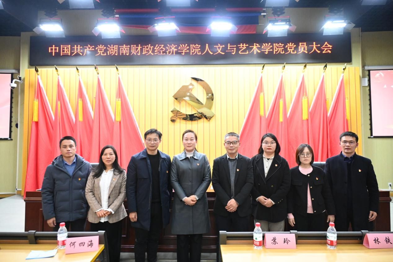 (苏玲与新一届人文与艺术学院党委会成员合影)