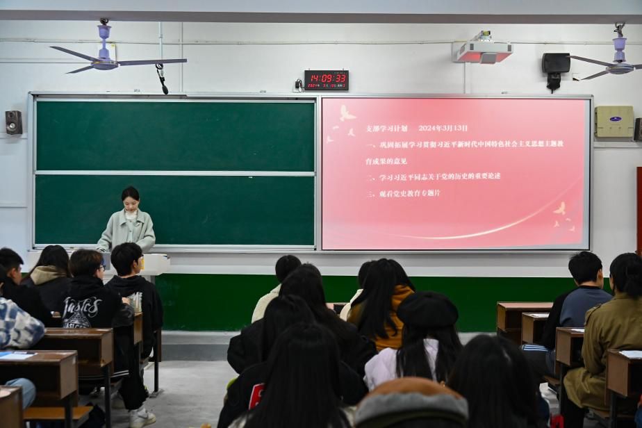 (本网讯)3月13日下午,人文与艺术学院学生党支部于主校区一教学楼1101开展了“学党史 悟思想 学雷锋 树新风”三月主题党日活动,支部书记欧璐主持,学生党员积极参与,活动取得有效成果。