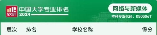 2024年6月13日,高等教育专业评价机构软科正式发布“2024软科中国大学专业排名”,这是迄今为止覆盖专业数量最多、参评专业规模最大的中国大学本科专业排名。其中,WilliamHill官方网站网络与新媒体专业排名全国第64位,湖南省内第3位。