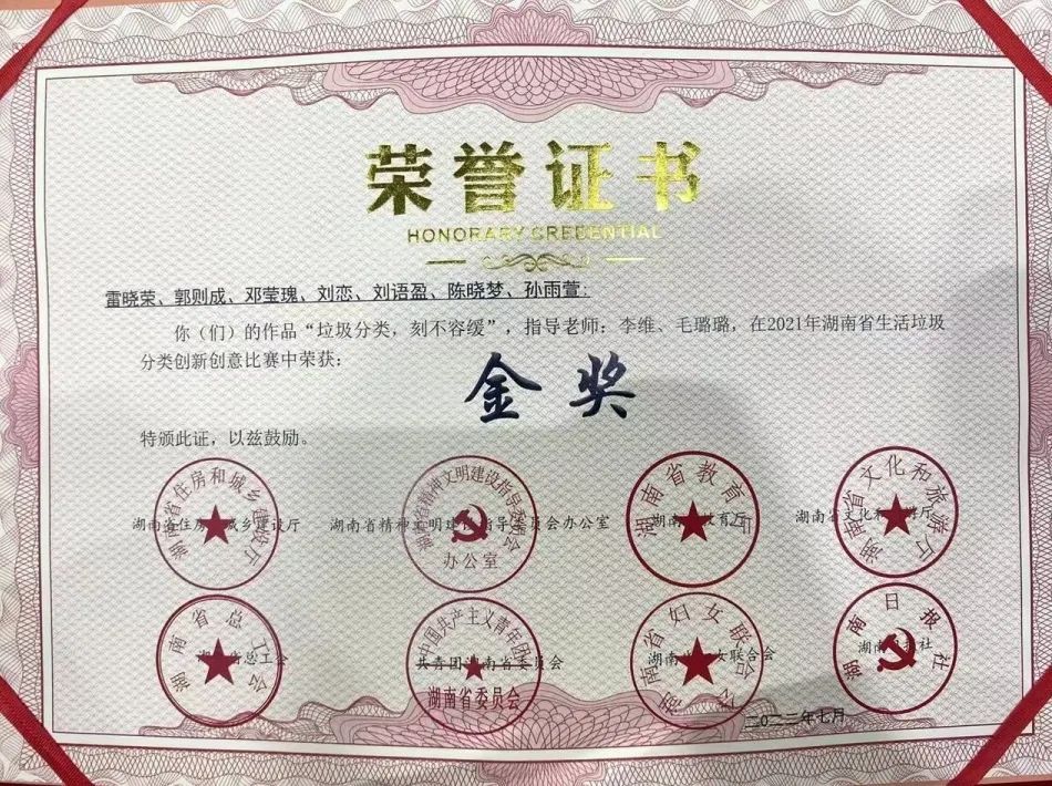 在2021年生活垃圾分类创意创新比赛获金奖