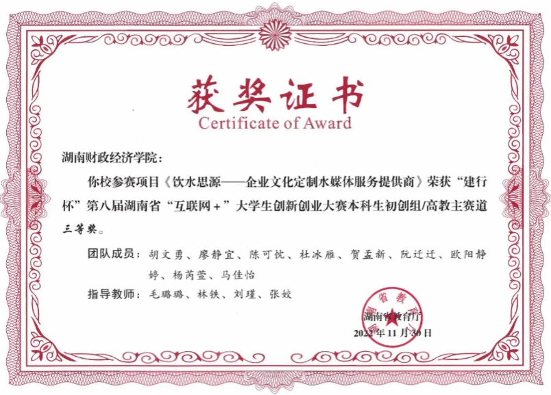 在互联网+比赛中荣获省三等奖