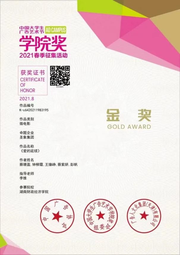 2021年中国大学生广告艺术节微电影作品获金奖