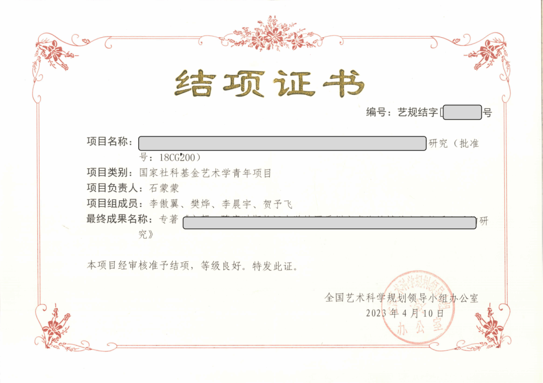石蒙蒙 国家社科基金艺术学青年项目结项