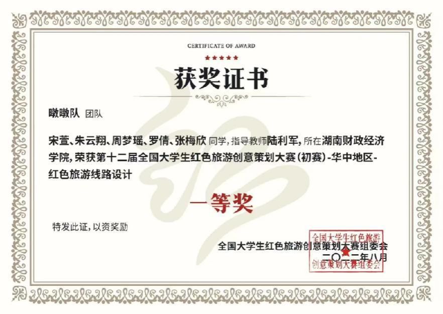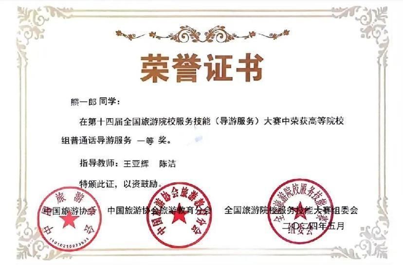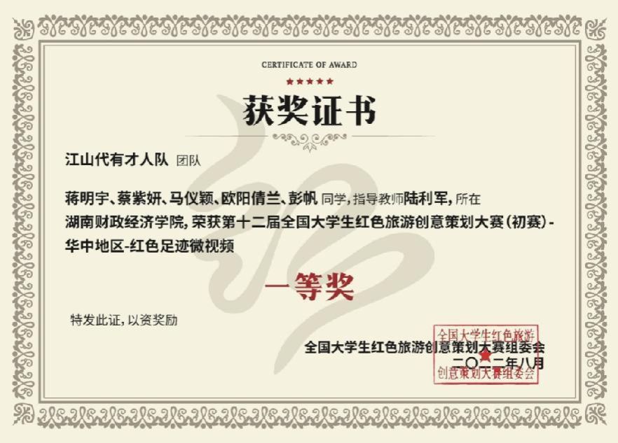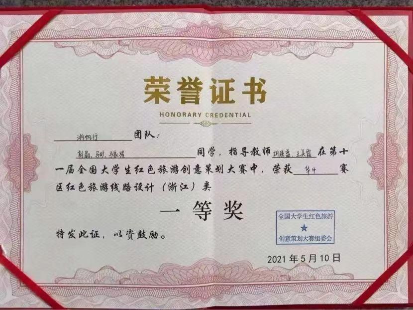 2019年以来,旅游管理专业学生共获得省级以上一等奖20项,二等奖17项,三等奖12项。其中,熊一郎等同学组成的鸿鹄队在第十三届全国大学生红色旅游创意策划大赛中,凭借作品《不用谢,我叫雷锋》斩获全国特等奖。
