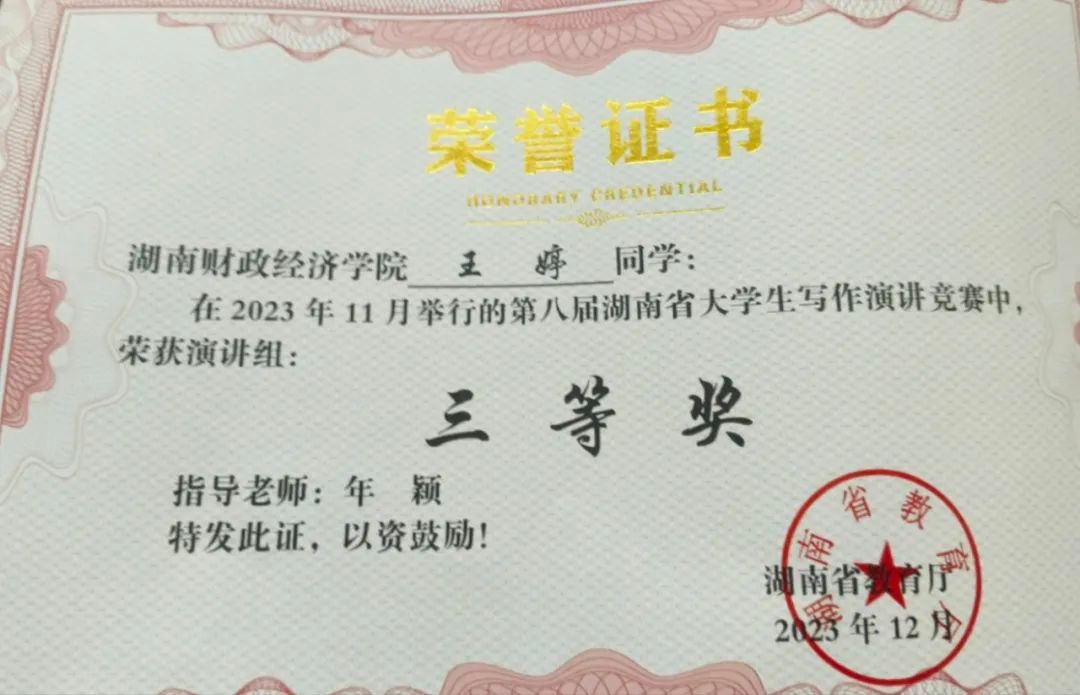 专业学生获全国大学生语言文字能力大赛省赛二等奖