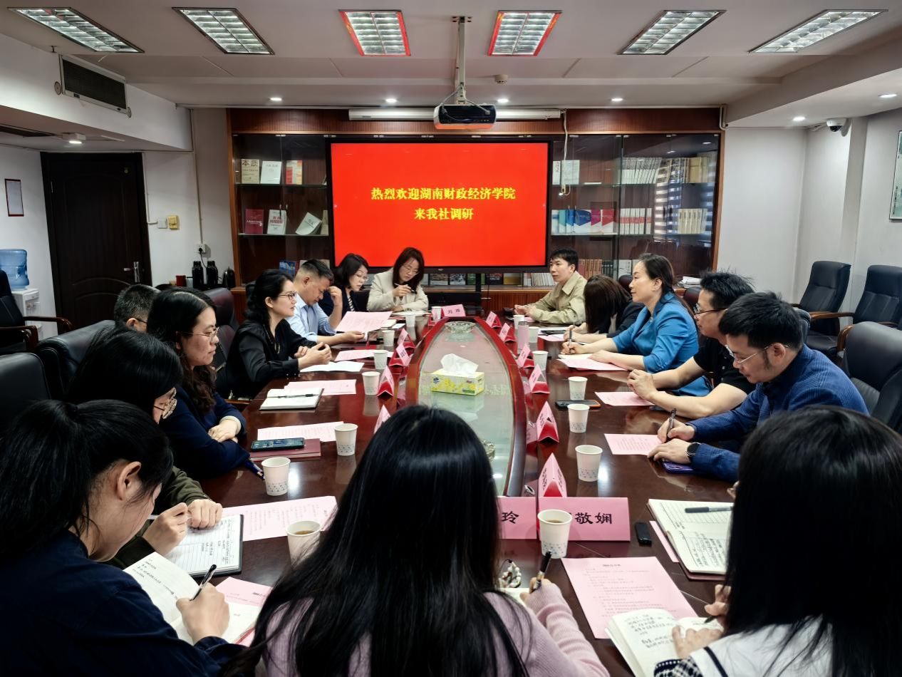 (本网讯)4月14日上午,校党委副书记苏玲率人文与艺术学院负责人、教师代表赴湖南人民出版社开展访企拓岗活动。湖南人民出版社副社长黎晓慧、党委副书记赵颖峰、骨干编辑等参加座谈。