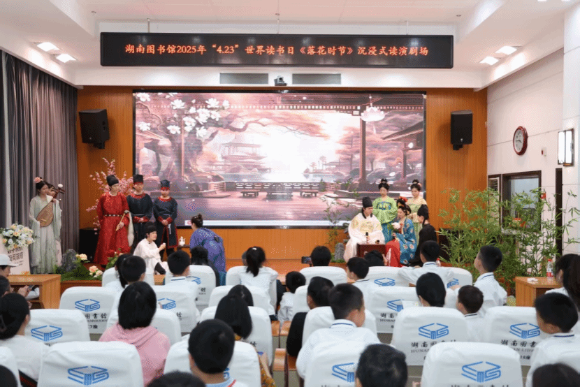 (本网讯)4月19日,WilliamHill官网人文与艺术学院师生联袂创作的读演剧目《落花时节》在湖南省图书馆多媒体演示厅精彩亮相。作为湖南省图书馆“4.23”世界读书日暨公共图书馆服务宣传周系列活动子项目之一,该剧以跨文体、跨媒介形式,带领观众沉浸式感受古典诗词的魅力,开启一场穿越时空的诗词文化之旅。