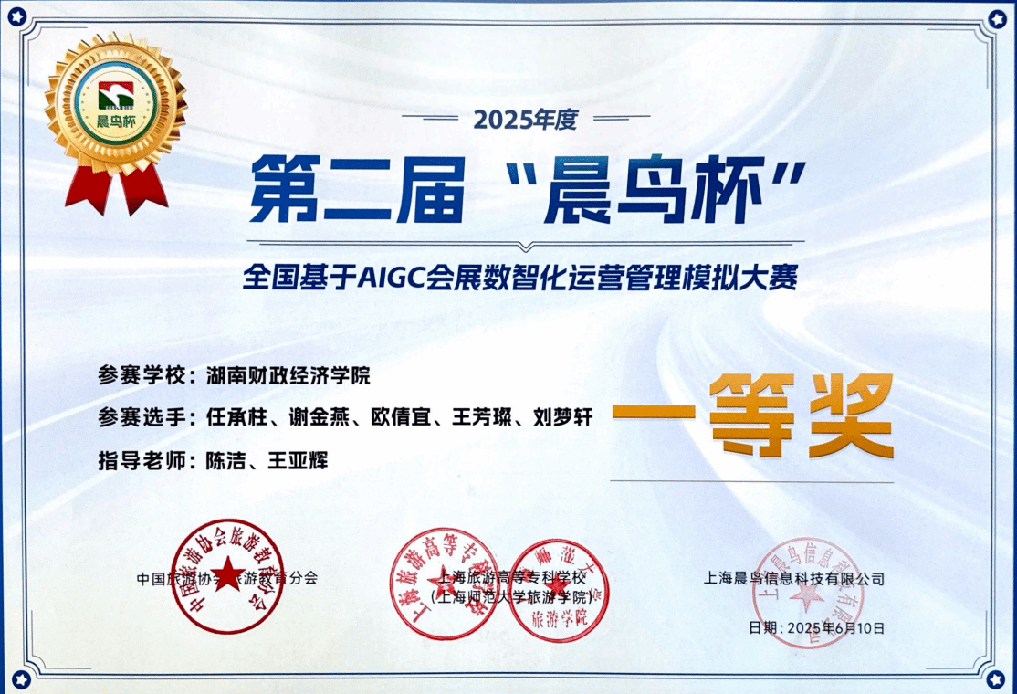 (本网讯)近日,第二届“晨鸟杯”全国基于AIGC会展数智化运营管理模拟大赛决赛在上海师范大学落幕,WilliamHill官网人文与艺术学院旅游管理系“单身派对”团队作品《2025长沙种业数智化绿色博览会会展策划方案》荣获大赛本科组一等奖。