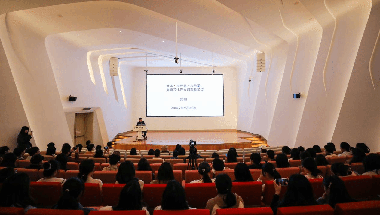 (本网讯)2025年11月30日上午,梅溪湖艺术博物馆1F学术报告厅内座无虚席。湖南省文物考古研究院二级研究员贺刚以“神鸟·獠牙·八角星:高庙文化先民的奠基之功”为题,为市民带来一场深度解码湖湘早期文明的学术盛宴,我院24级文化产业管理专业受邀参加。