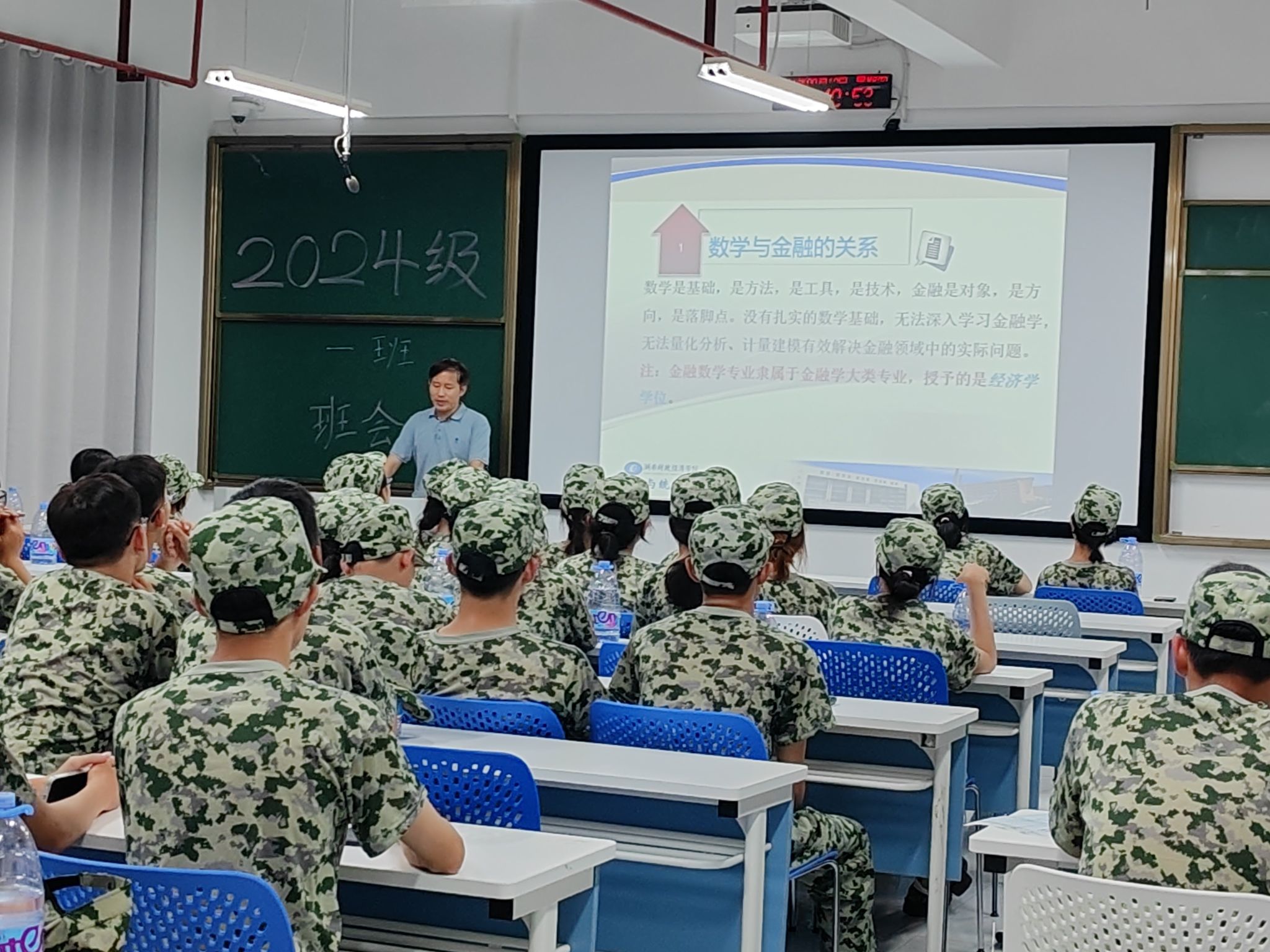 第二阶段由各系部组织学生进行新生专业知识教育。袁月定、丁德琼、王雨溪三位主任分别介绍了金融数学专业和经济统计学、数学与应用数学专业的现状、前景、开设的课程、就业方向、培养目标、专业优势等。通过专业知识教育,新生对所学专业有了更深的理解,对未来四年的大学生涯有了更明确的规划 。