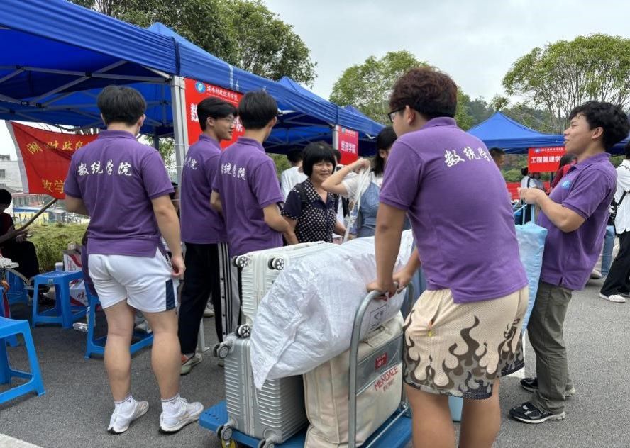 迎新日当天,校园内飘扬着鲜艳的彩旗和横幅,我院志愿者们身着醒目的紫色短袖,忙碌于校园的各个角落。他们热情洋溢,面带微笑,为新生提供咨询、指引方向、为家长答疑、搬运行李等服务,用实际行动诠释了“奉献、友爱、互助、进步”的志愿服务精神。