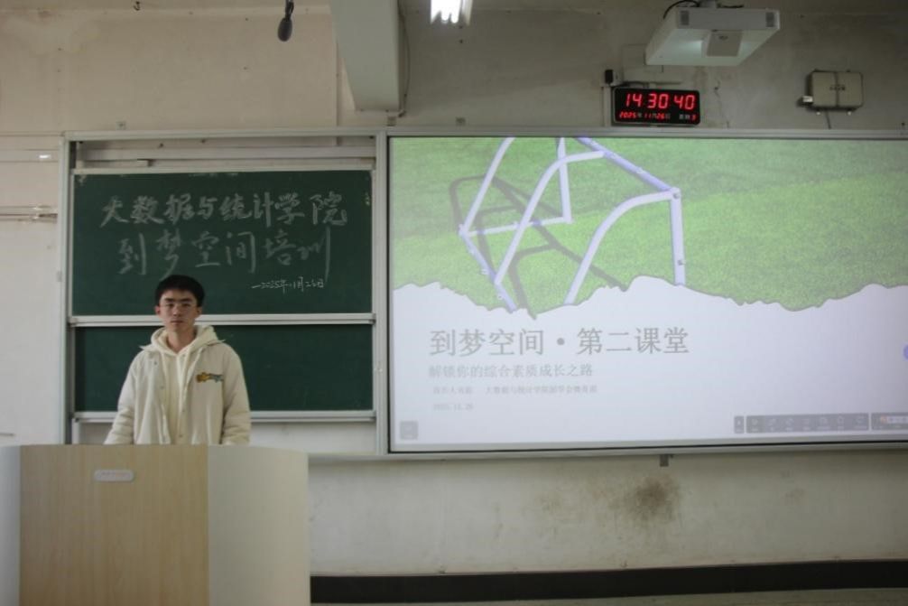为深入贯彻“三全育人”理念,推动第二课堂活动规范化、体系化开展,有效提升学生骨干的系统操作能力、活动策划水平与组织效能,全面强化全院同学对第二课堂学分制度的理解与重视,128日,大数据与统计学院成功举办“到梦空间”专题班会评比大赛。
