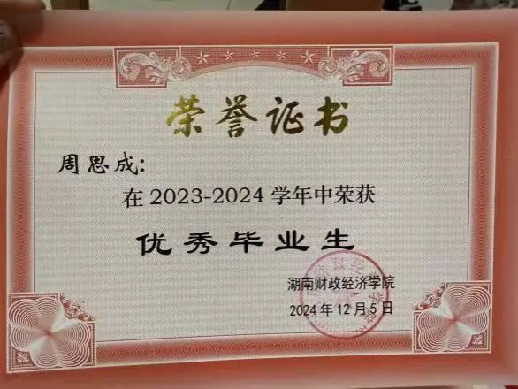 在校期间,周思成同学身兼班级团支书与院学生会主席两职,始终以高度责任心与饱满热情投入工作。在班级,精心组织团日活动,创新形式融入红色元素,激发同学参与热情,提升班级凝聚力,所在班级获评“优秀团支部”。于学生会,她统筹策划多项校园活动,从前期筹备到现场执行亲力亲为,带领团队克服重重困难,活动广受师生好评。即便在学业最紧张的阶段,她仍坚持每晚梳理“工作复盘表”,用不同颜色标注待办事项的优先级。这种精益求精的态度,让“有问题找思成”成为同学们的习惯。