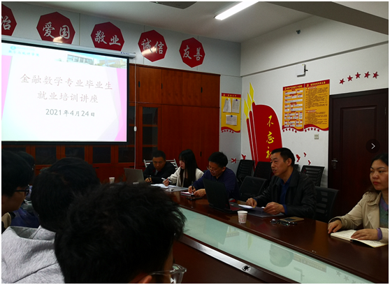 (本网讯)4月24日上午,数学与统计学院在办公楼809会议室举办毕业生就业培训讲座。讲座邀请望城区人社局工伤保险中心副主任凌小阳主讲。学院院长吴建国主持讲座,学院领导班子、各办公室主任及2017级金融数学班学生...